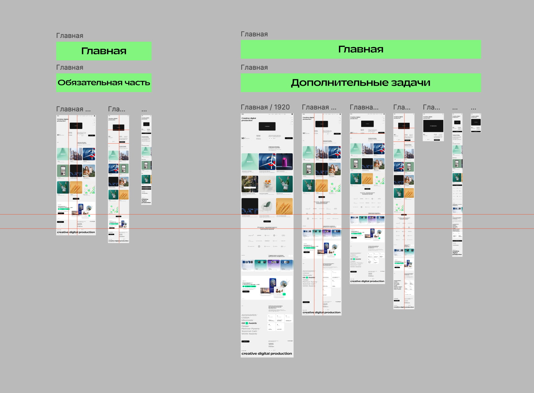 Макет включал адаптив в трёх версиях (мобильная, планшетная и десктоп), большое количество мелких элементов, нестандартные перестроения сетки, двумерный скейлинг в отдельных блоках, а также сложные анимации и микроанимации.