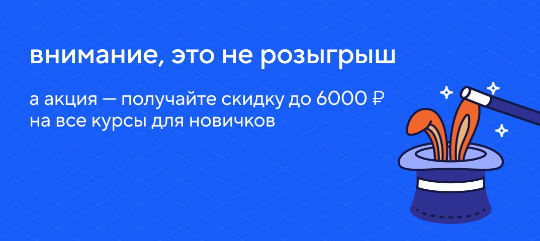 Только до 3 апреля скидки до 6000 ₽ на курсы по HTML, JavaScript, React, Node.js, Nest.js. Учиться фронтенду -- весело, мы проверяли.